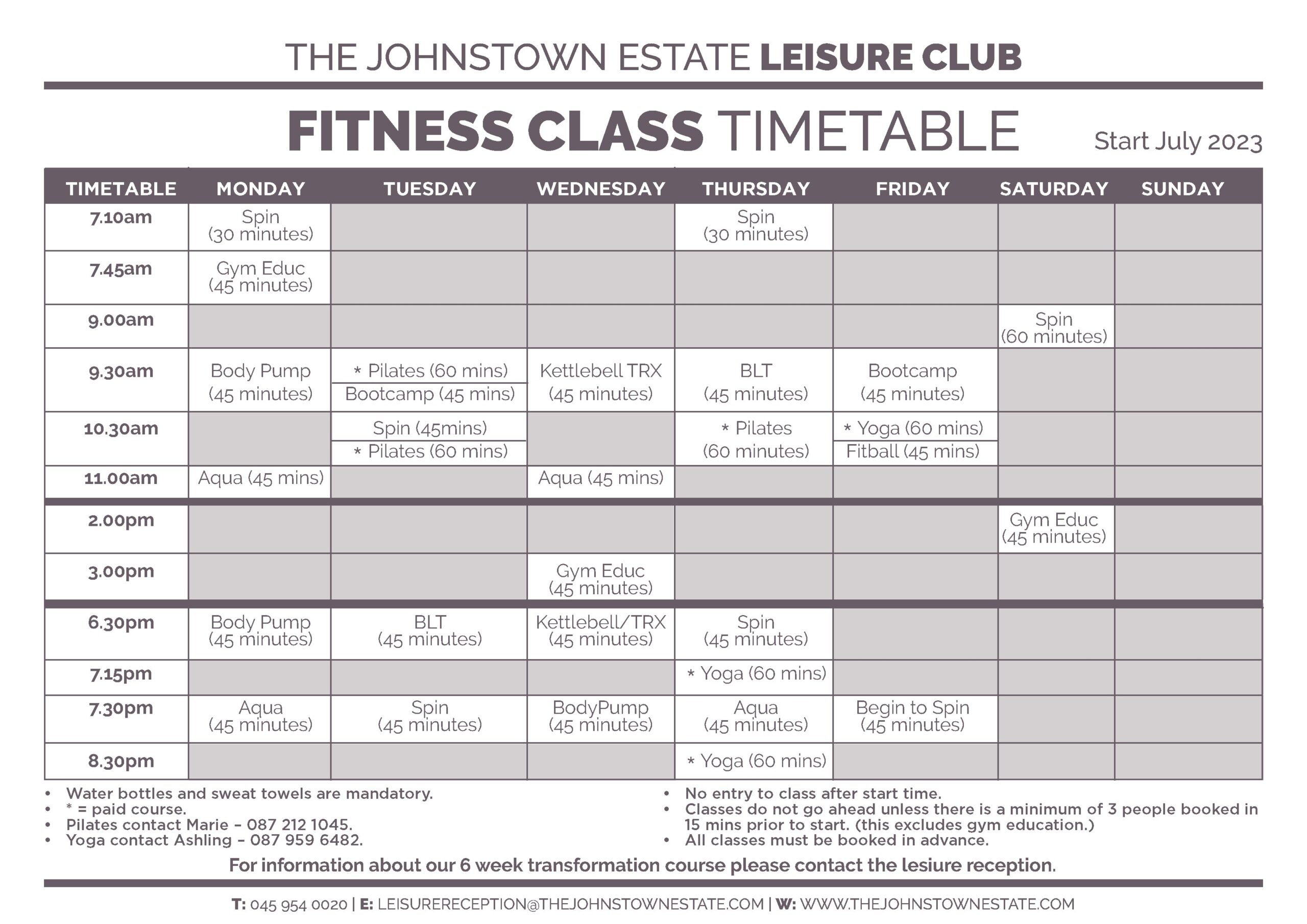 To find out more about our exciting new Fitness Classes, contact a member of our leisure team for more information on 046 954 0000 or email leisure.reception@thejohnstownestate.com